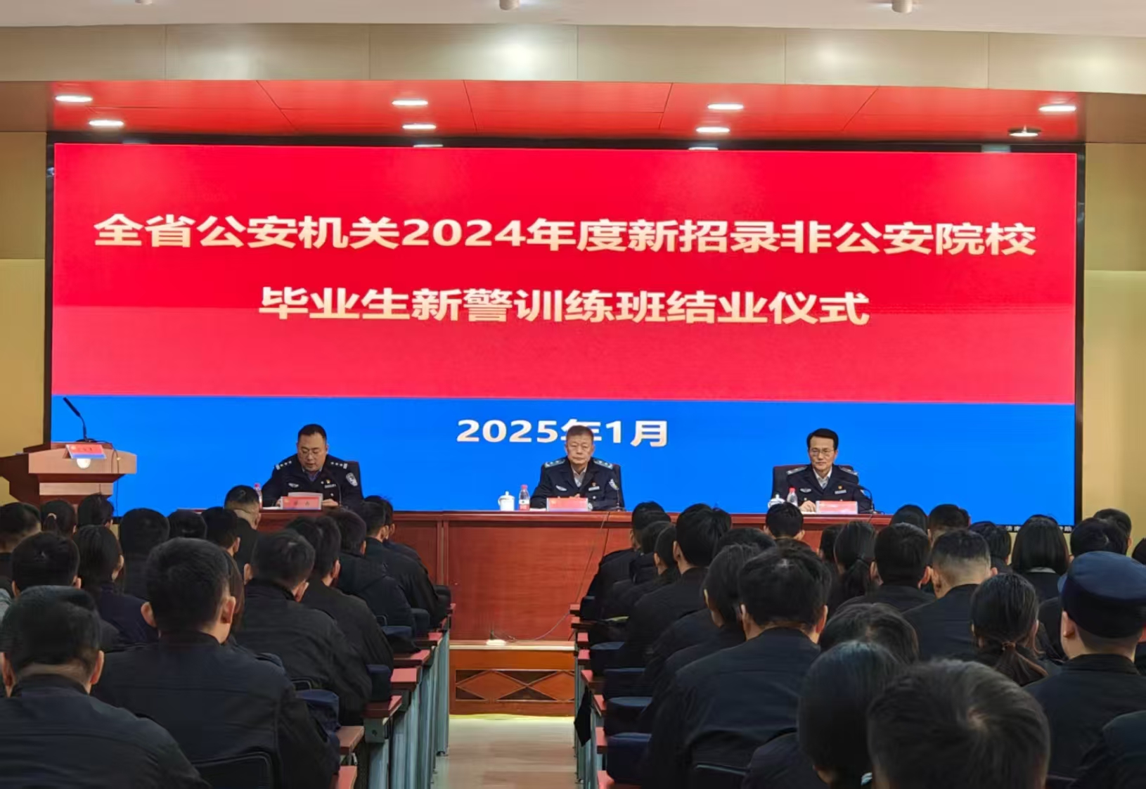 1月16日,全省公安機關2024年度新招錄非公安院校畢業生新警訓練班結業儀式在我校文東校區舉行。學校黨委委員、副院長李亦農出席儀式并講話,干部培訓部主要負責同志主持儀式。