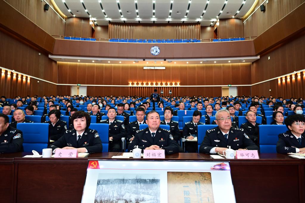 劉淵以《從歷史和未來中汲取奮進(jìn)力量,深入學(xué)習(xí)貫徹習(xí)近平新時代中國特色社會主義思想》為題,以“開天辟地、改天換地、翻天覆地、驚天動地、頂天立地、歡天喜地”為主線,深情回顧了我黨百年奮斗的光輝歷程和新中國成立百年時的宏偉藍(lán)圖。他強(qiáng)調(diào),要堅持政治引領(lǐng),把黨的創(chuàng)新理論轉(zhuǎn)化為指導(dǎo)實踐、推動工作的強(qiáng)大動力;要聚焦立德樹人、育警鑄魂根本任務(wù),以高質(zhì)量黨建引領(lǐng)公安教育事業(yè)高質(zhì)量發(fā)展;要鍛造忠誠干凈擔(dān)當(dāng)?shù)母刹繋熒犖椋瑸榉?wù)公安工作現(xiàn)代化提供堅實保障。