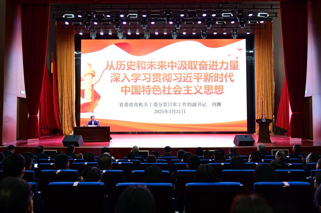 為深入學(xué)習(xí)貫徹習(xí)近平新時代中國特色社會主義思想,弘揚偉大建黨精神,傳承紅色基因,賡續(xù)紅色血脈,3月31日,學(xué)校邀請省委省直機(jī)關(guān)工委分管日常工作的副書記劉淵到我校明水校區(qū)作專題輔導(dǎo)報告。學(xué)校黨委書記劉:曛鞒直ǜ婊,省公安廳機(jī)關(guān)黨委副書記史瑩應(yīng)邀參加活動,在校黨委班子成員、副處以上干部、教職工代表、全體學(xué)生參會。