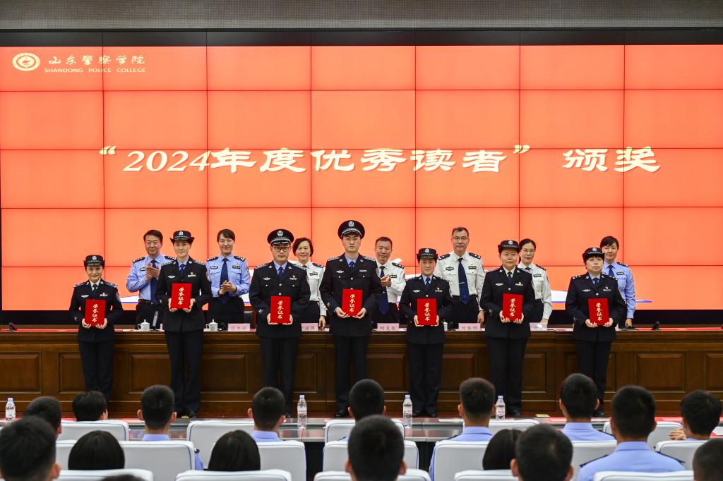 開幕式上,圖書館主要負責同志介紹了本屆讀書節舉辦的十項活動內容。教師代表邵文文以《青春作伴好讀書》為題,分享關于閱讀與成長的感悟。學生代表孫宇飛宣讀“書香警院”讀書倡議書。與會領導共同為獲得“2024年度優秀讀者”的師生代表頒獎。