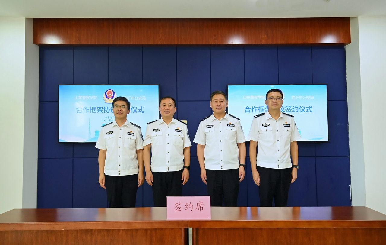 8月5日,劉福宏同志一行赴臨沂出席我校與臨沂市公安局合作框架協議簽約儀式。臨沂市副市長、市公安局黨委書記、局長任澤龍,我校黨委書記劉福宏在儀式上致辭,臨沂市公安局黨委副書記、政委劉秀光,學校黨委委員、副院長呂紹忠,學校原副院長徐仲成出席儀式,臨沂市公安局黨委委員、政治部主任、交管支隊支隊長王志強主持儀式。