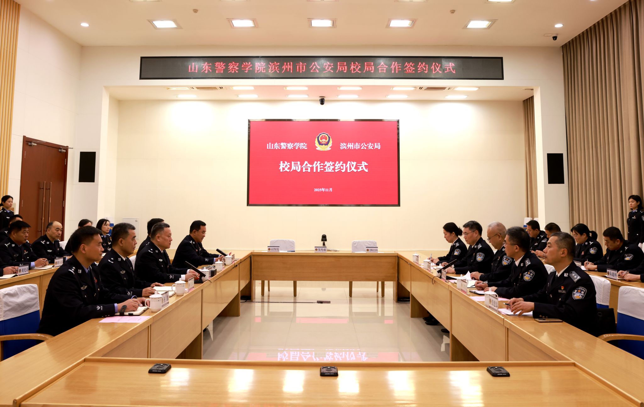 11月6日,我校與濱州市公安局合作簽約儀式在濱州市公安局舉行,學校黨委副書記、院長畢可志,濱州市副市長、市公安局黨委書記、局長張慶勇出席儀式并分別致辭。