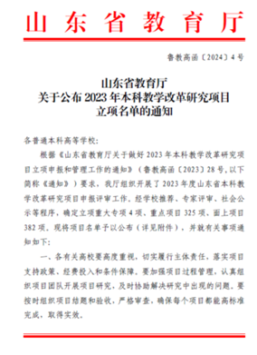近日,山東省教育廳公布了2023年山東省本科教學改革研究項目立項名單,我校推薦的2個項目、與山東政法學院合作的1個項目全部獲批立項。其中,重點項目1項、面上項目2項。