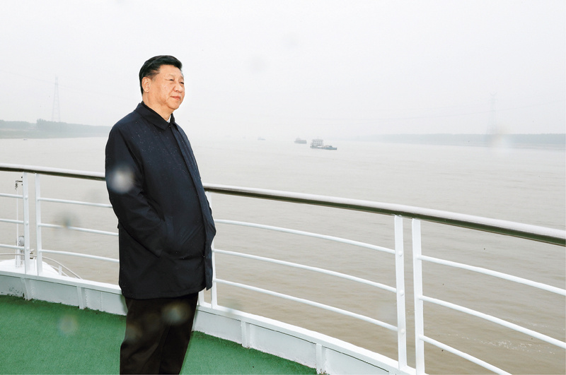 2018年4月26日下午,中共中央總書記、國家主席、中央軍委主席習近平在武漢主持召開深入推動長江經(jīng)濟帶發(fā)展座談會并發(fā)表重要講話。這是座談會前,習近平于25日上午乘船沿江察看兩岸生態(tài)環(huán)境和發(fā)展建設(shè)情況。 新華社記者 謝環(huán)馳/攝