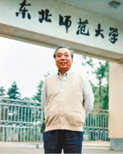 鄭德榮在東北師范大學校門前留念(1985年6月21日攝)。新華社發