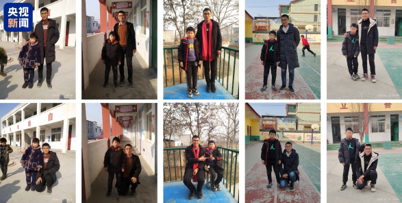 為了記錄他們的成長,任明杰每年都會和學生拍攝兩張合照,其中一張照片任明杰是站著的,另一張他是蹲著的。“我站著和孩子拍照,是將自己作為身高尺,見證孩子6年都在長高;我蹲下來拍照,因為孩子的身高比較矮,這表示我和他們是平等尊重的關系。”